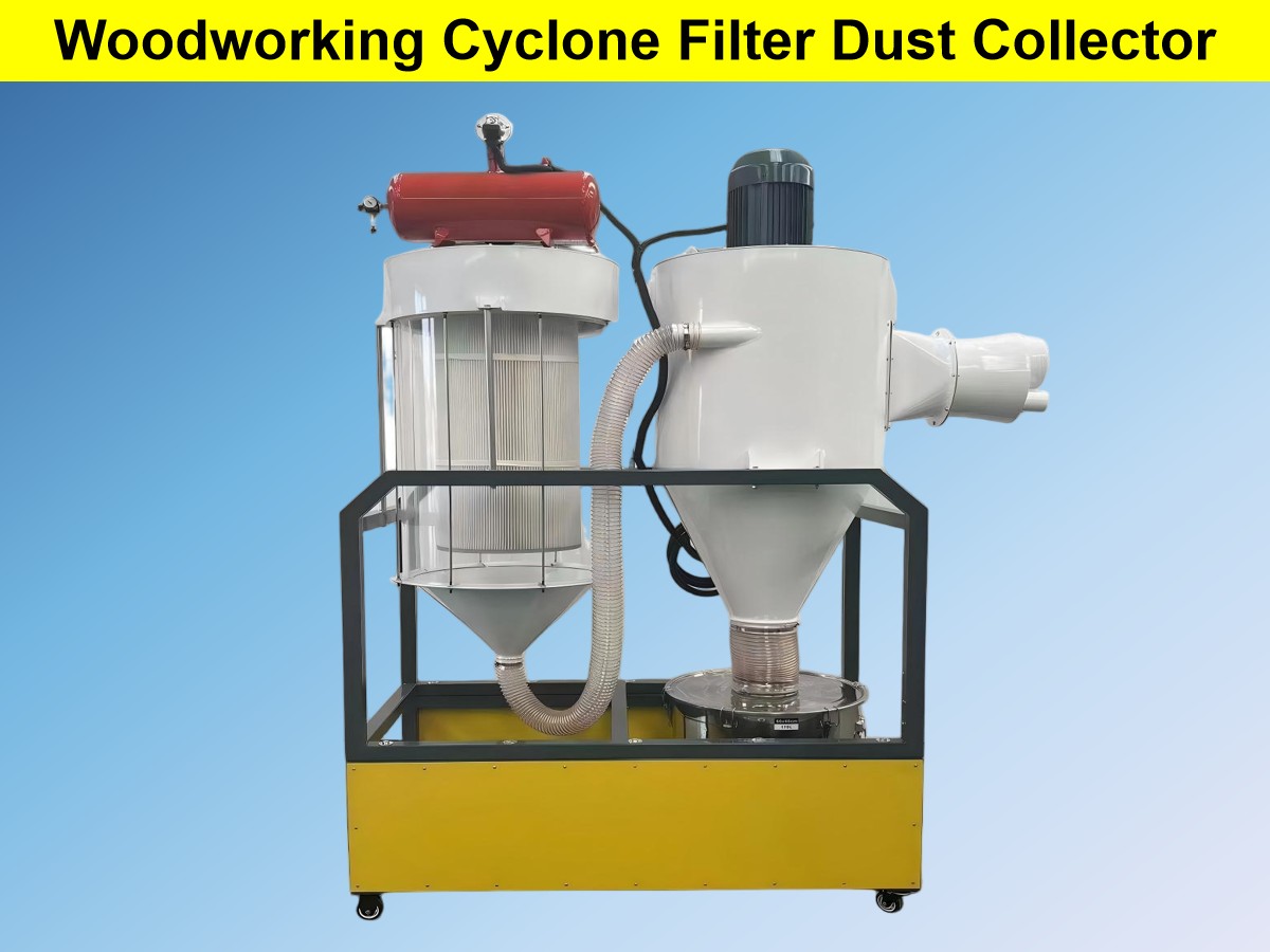 Les dépoussiéreurs de travail du bois de type filtre cyclone sont une combinaison de séparation cyclone et de filtration par cartouche filtrante. Ils combinent les avantages des dépoussiéreurs à cyclone pour le traitement des poussières grossières à haute concentration avec les caractéristiques de haute précision des dépoussiéreurs à cartouche filtrante pour filtrer les poussières fines. Spécialement conçus pour la large distribution granulométrique de sciure et de poudre de bois dans les ateliers de menuiserie, leur efficacité de dépoussiérage est bien supérieure à celle des équipements monoblocs.