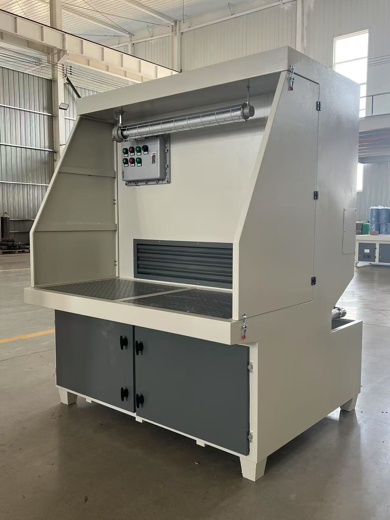 1. La table de poussière humide se compose d'une buse, d'un tuyau et d'une pompe à eau. La pompe à eau tire l'eau du réservoir d'eau et la pulvérise uniformément à l'intérieur du collecteur de poussière à travers la buse pour former une brume d'eau fine pour la capture de la poussière.